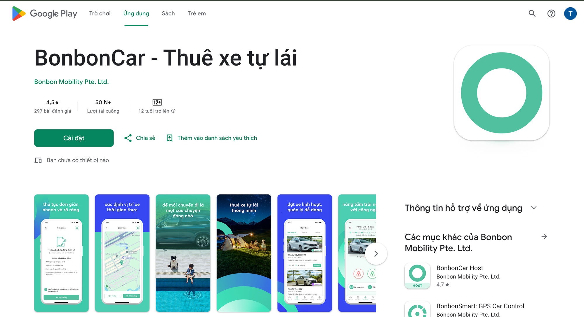 Ứng dụng BonbonCar cho phép người dùng đặt thuê xe tự lái, thanh toán và quản lý toàn bộ giao dịch thuê xe. Ứng dụng hiện đã có mặt trên Google Play (Android) và App Store (iOS) với tên “BonbonCar – Thuê xe tự lái”.