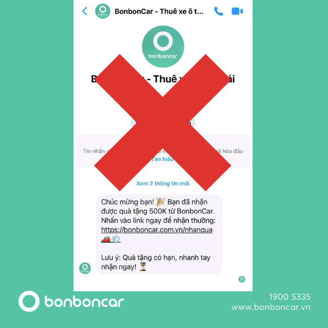 BonbonCar là ứng dụng thuê xe tự lái hoạt động minh bạch, hợp pháp và uy tín. Tuy nhiên, thời gian gần đây đã xuất hiện một số cá nhân và tổ chức mạo danh BonbonCar để thực hiện các hành vi lừa đảo, nhằm chiếm đoạt tài sản và thông tin cá nhân của người dùng.