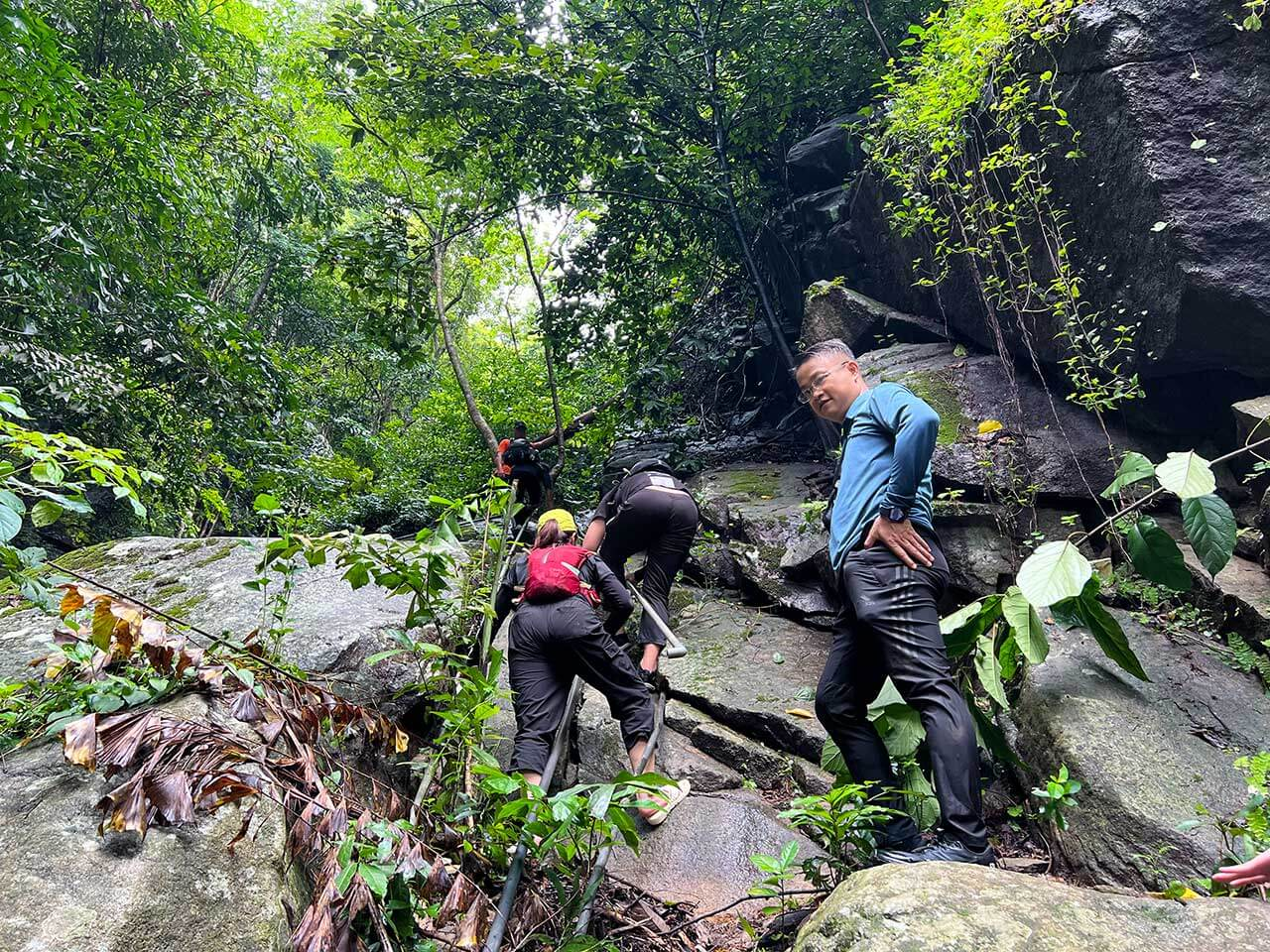 Trong đó, đoạn leo núi Phụng tương đối nhẹ, địa hình khá bằng phẳng, phù hợp để làm quen và giữ sức. Tuy nhiên, từ đỉnh núi Phụng sang núi Bà Đen, cung đường bắt đầu dốc cao, hiểm trở và khó di chuyển hơn rất nhiều.