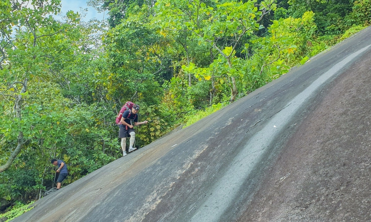 Đặc biệt, cung đường còn có đoạn dốc đứng dài khoảng 700m, nơi người đi phải leo hoàn toàn bằng tay bám đá, tiềm ẩn nhiều rủi ro và chỉ phù hợp với những ai có thể lực tốt, kinh nghiệm leo núi và sự chuẩn bị kỹ lưỡng.