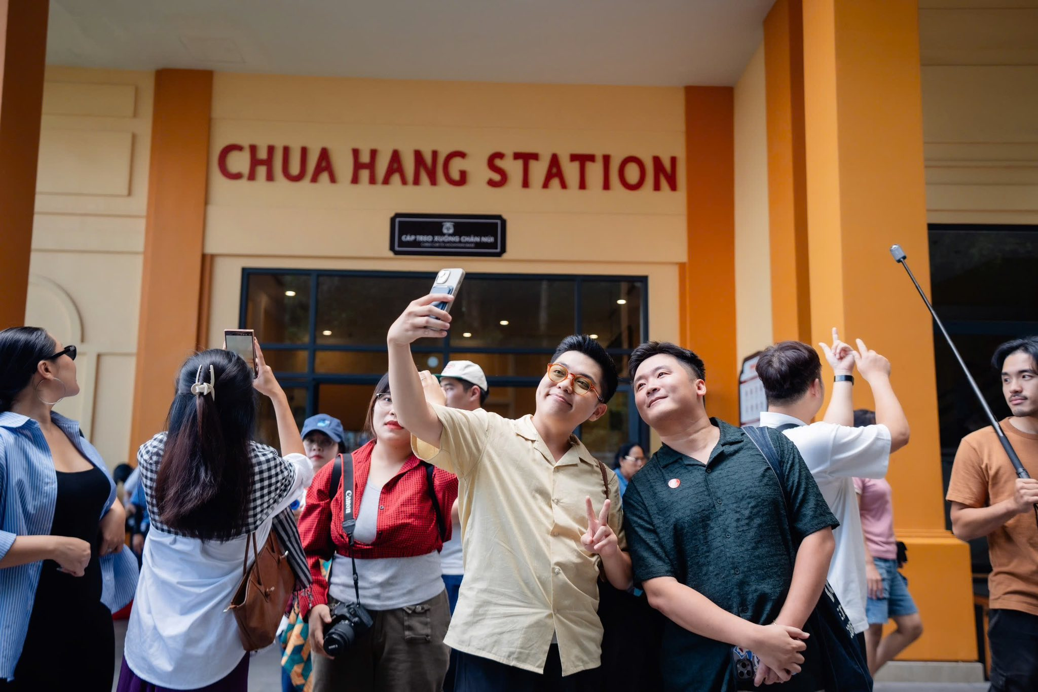 Nhà ga Chùa Hang được thiết kế vô cùng độc đáo với hình dáng như một ngôi chùa 5 tầng vô cùng uy nghiêm và chứa đầy vẻ bí ẩn. Màu sắc chủ đạo của nơi đây là màu vàng tươi trông vô cùng sang trọng.