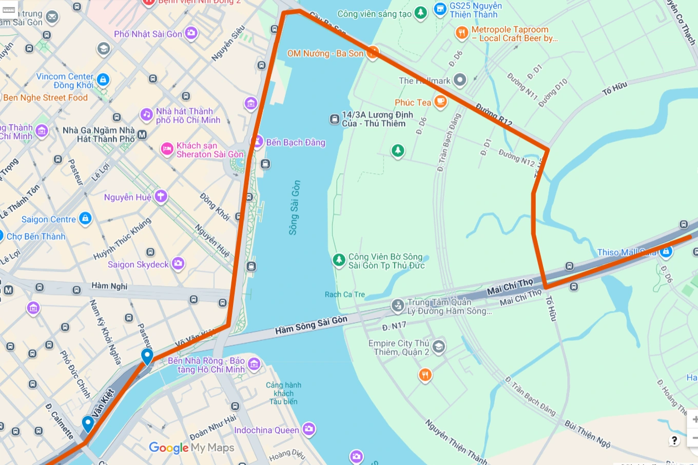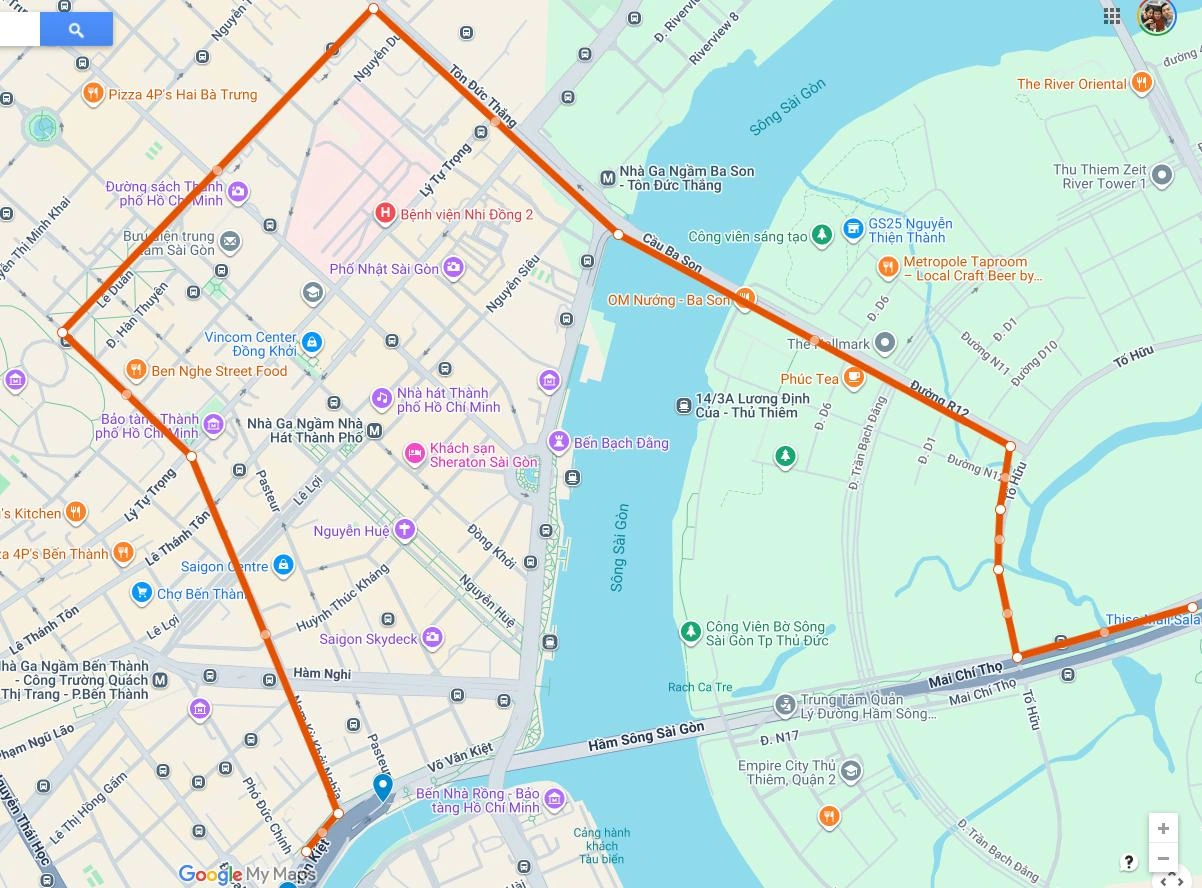 Mai Chí Thọ → Tố Hữu → R12 → cầu Ba Son → Lê Duẩn → Nam Kỳ Khởi Nghĩa → Võ Văn Kiệt.
