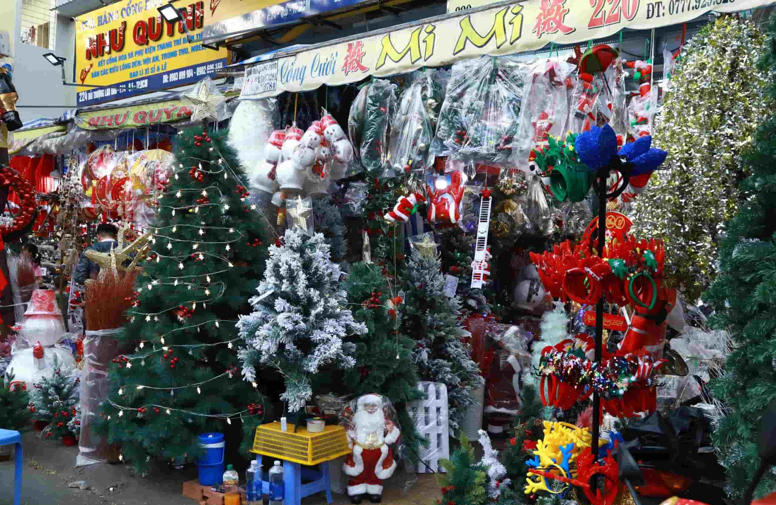 Trên đường Trần Hưng Đạo, Quận 5, với đồ trang trí Trung Hoa kết hợp Noel. Có thể mua quà lưu niệm giá rẻ.