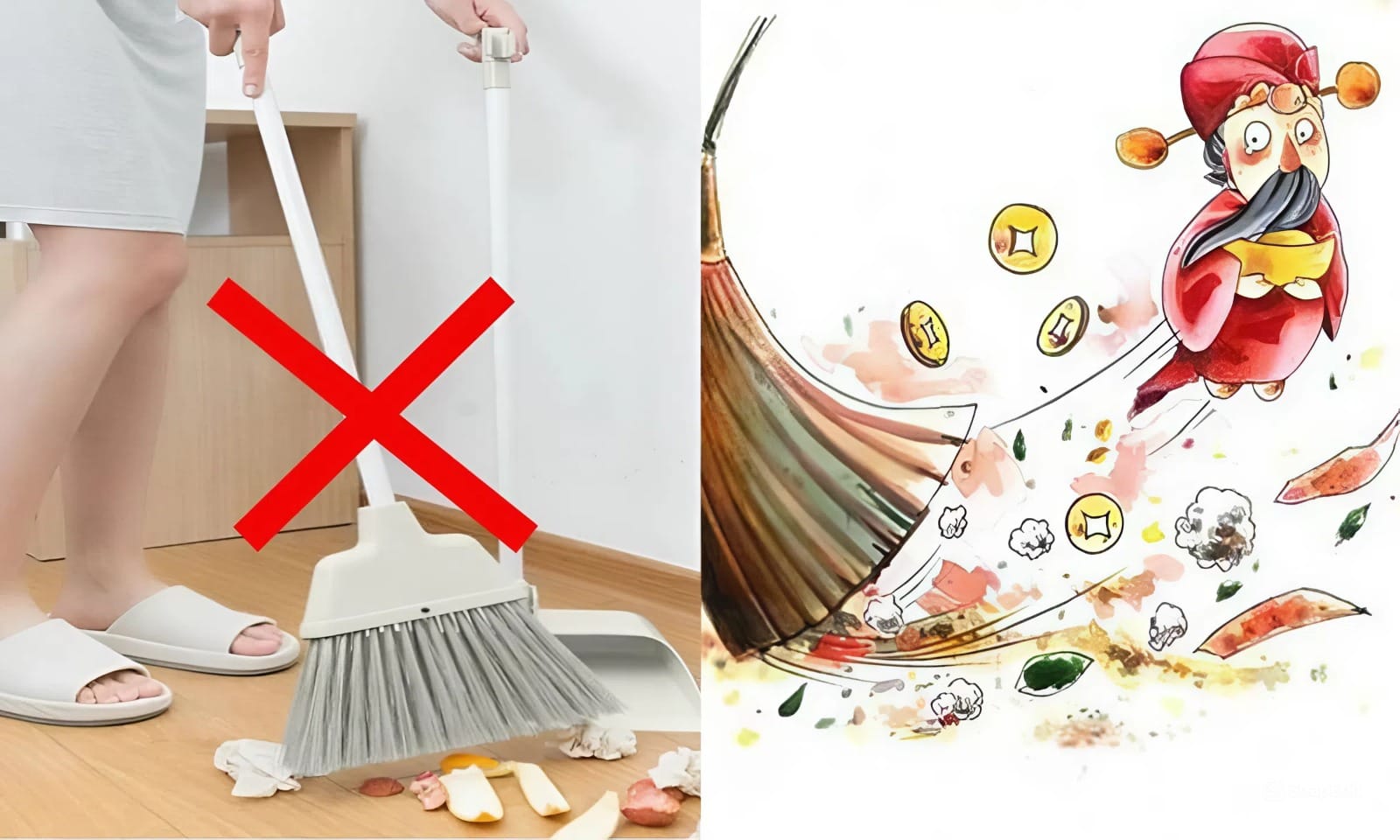 - Giải pháp: Các gia đình thường dọn dẹp sạch sẽ trước đêm Giao thừa. Nếu bắt buộc phải quét vào mùng 1, hãy quét rác vào một góc nhà và không hốt đi cho đến khi hết 3 ngày Tết.