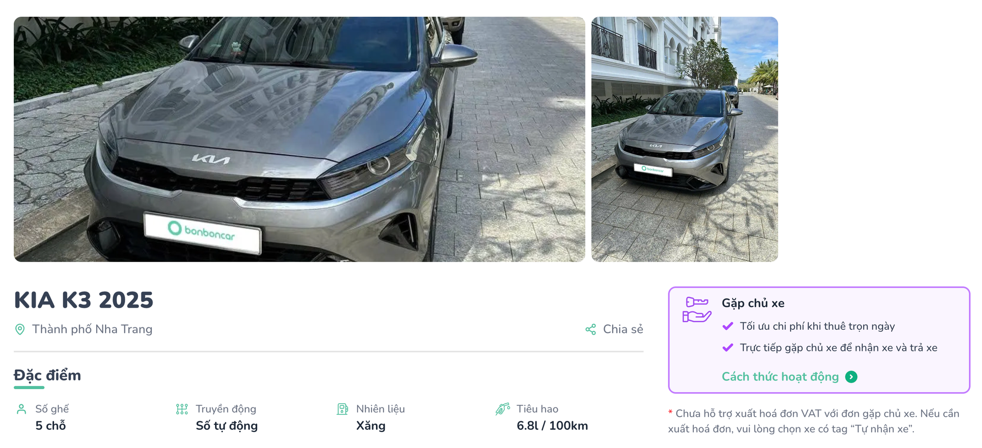 - Thủ tục nhanh: Chỉ cần CCCD, GPLX hợp lệ, tiền cọc và app xác thực – BonbonCar hỗ trợ online 100%.
