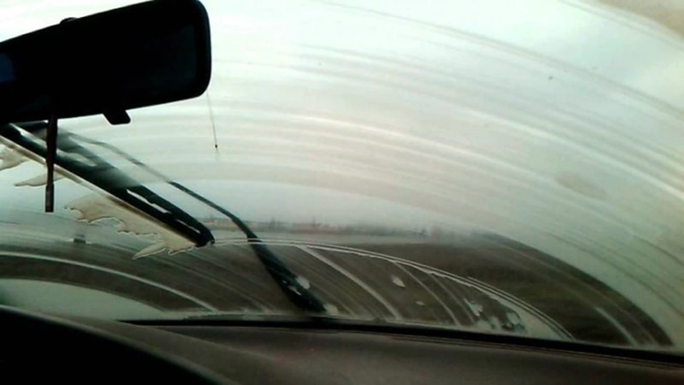 Thay vì làm sạch nước, gạt mưa lại để lại một lớp màng nước mỏng, mờ như sương mù trên kính.