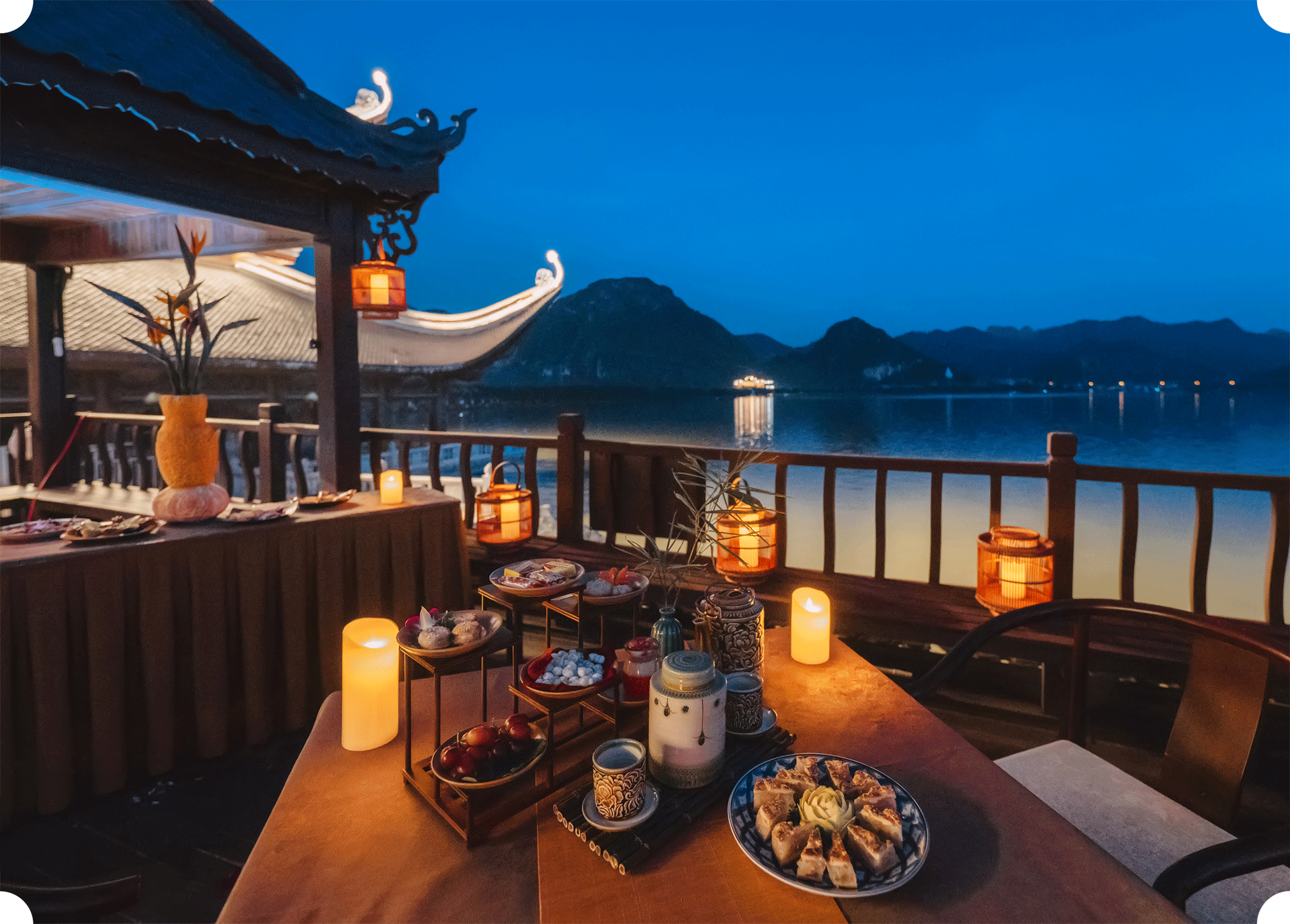 - Nhà hàng Hỷ Lạc: Có sức chứa 50 người, phục vụ món ngon và các tiết mục nhạc cụ dân tộc. Đây cũng là nơi neo đậu của các du thuyền VIP vào buổi tối.
