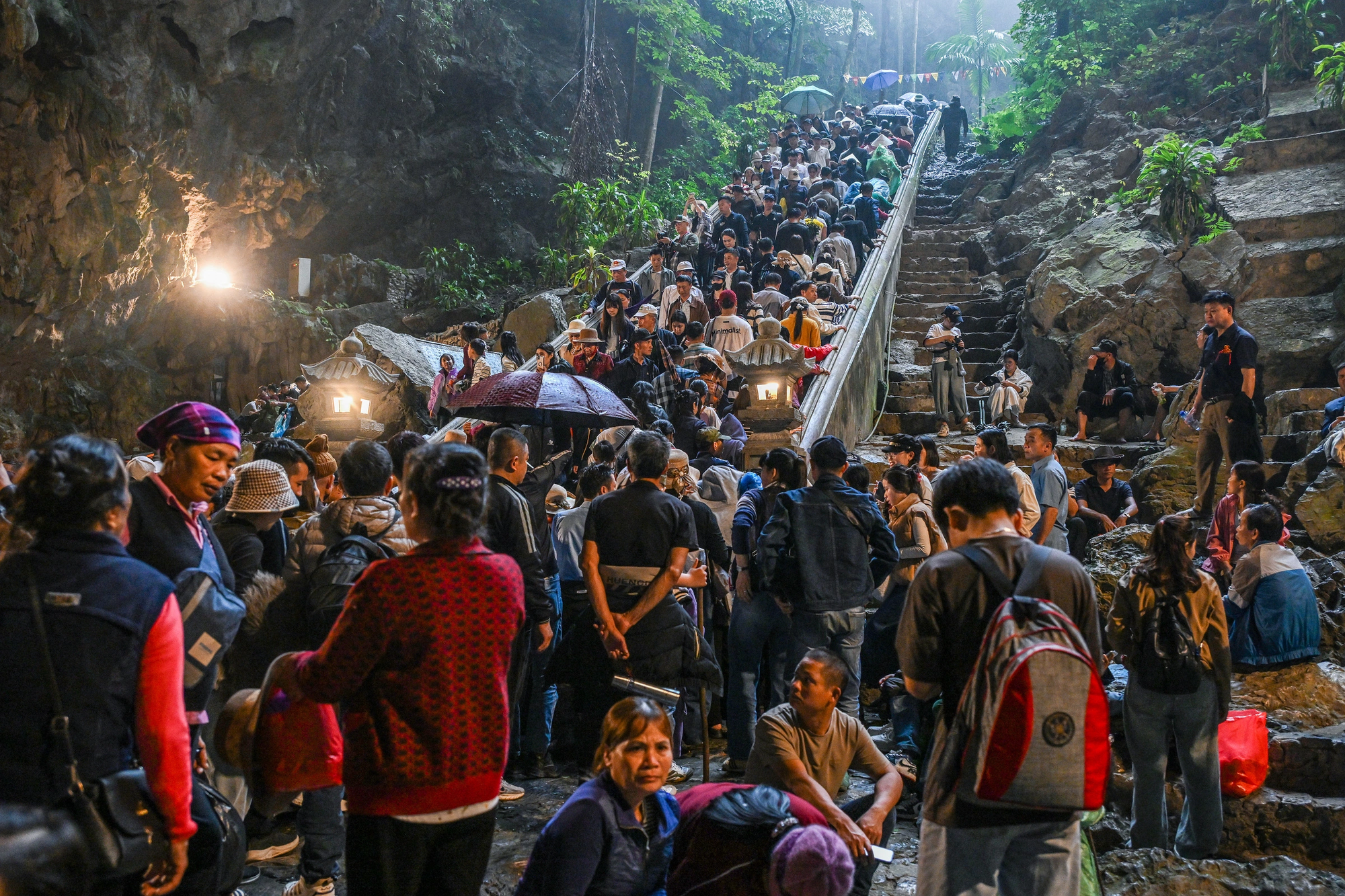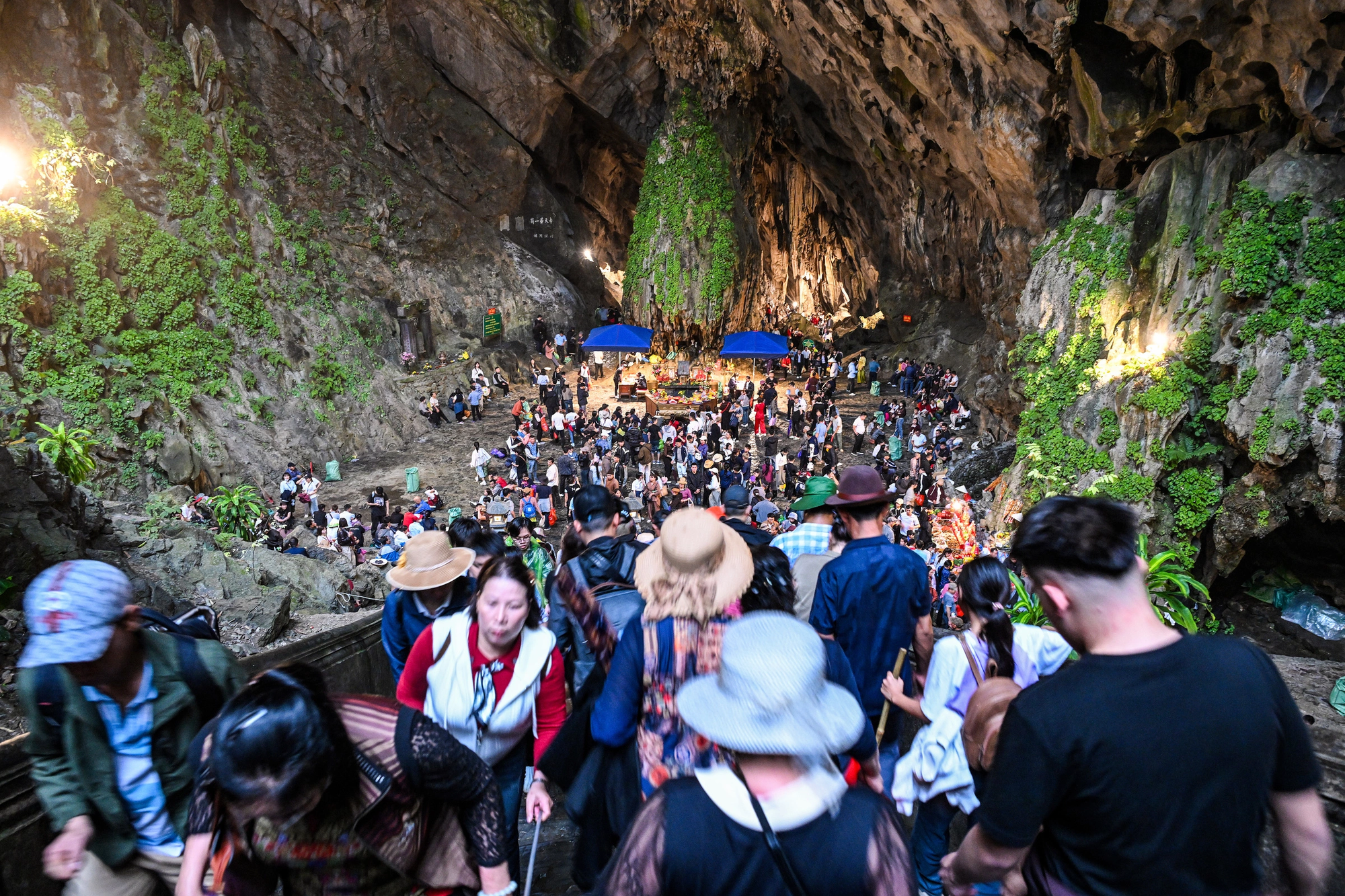 Tại Động Hương Tích – điểm hành hương chính, lượng người vào thắp hương và chiêm bái đông nhưng không ghi nhận tình trạng chen lấn nghiêm trọng. Du khách xếp hàng theo hướng dẫn của lực lượng điều tiết.