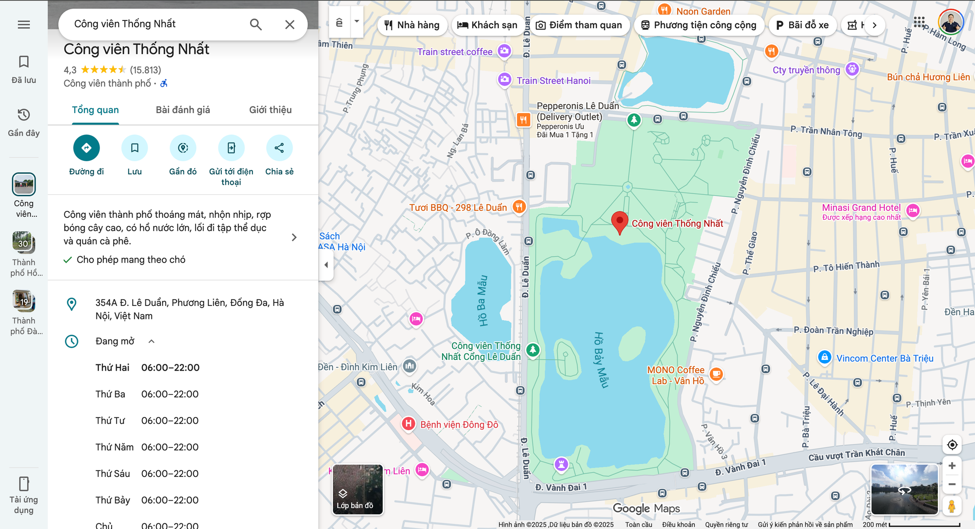 - Sử dụng app Google Maps hoặc Apple Maps với từ khóa "Công viên Thống Nhất Hà Nội".