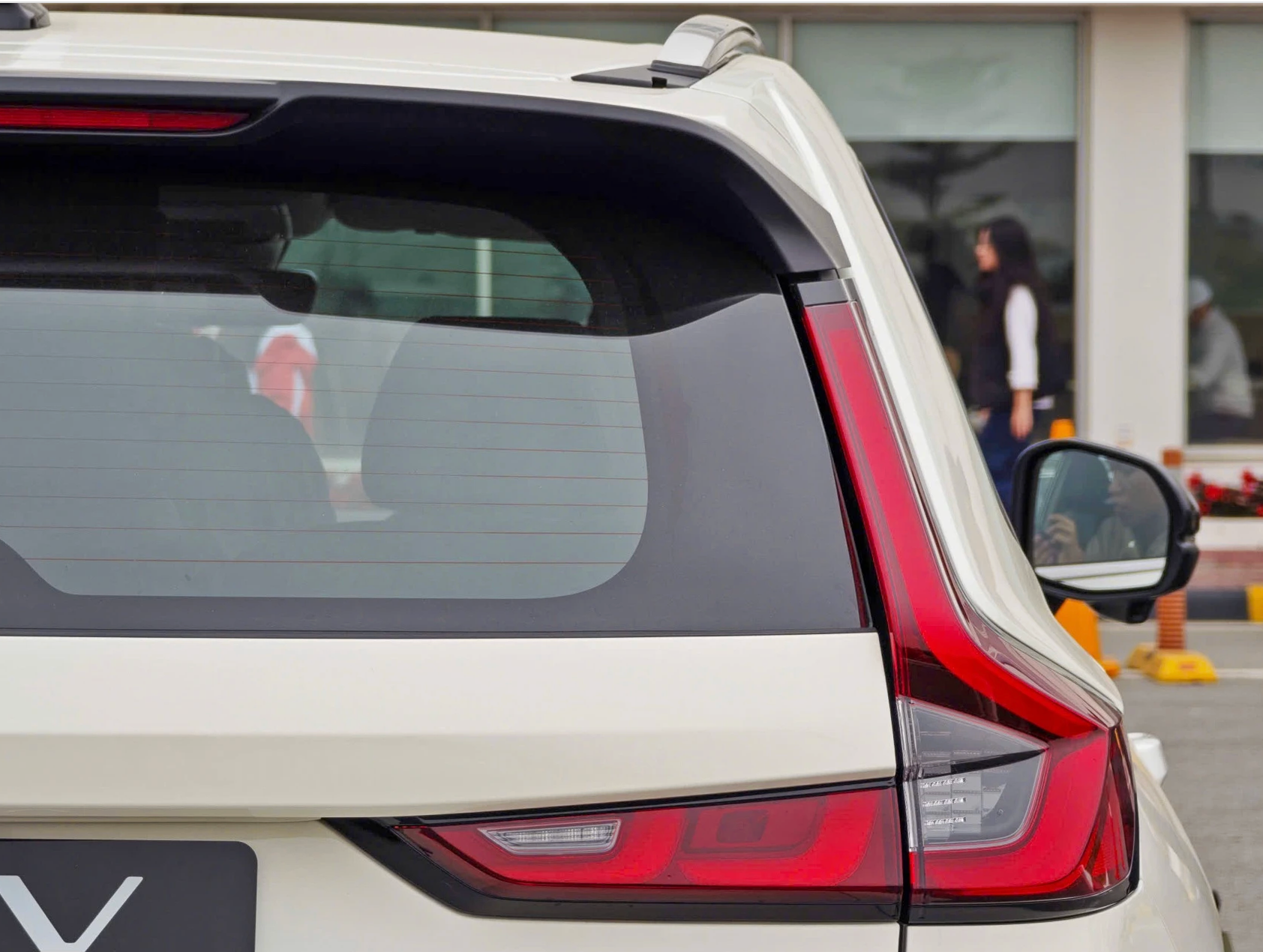 Tiến về thân và đuôi xe, logo e:HEV đặt phía sau giúp nhận diện rõ ràng phiên bản hybrid. Đáng chú ý, logo Honda đã bỏ đường viền xanh lam từng xuất hiện trên bản nhập khẩu trước đây, mang lại cảm giác liền mạch và khỏe khoắn hơn cho tổng thể thiết kế.