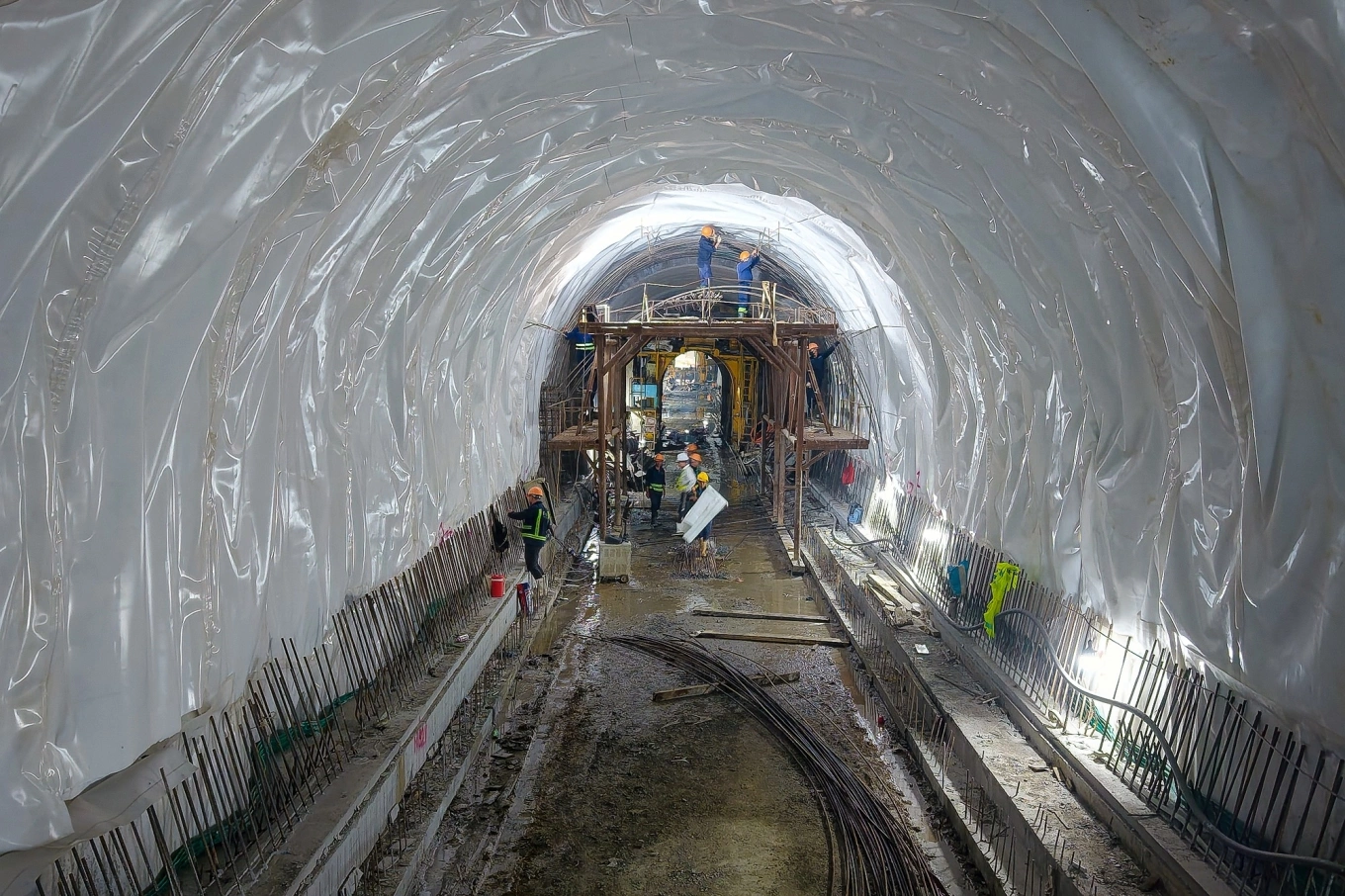 Sau khi thông hầm, nhà thầu huy động hơn 250 kỹ sư, công nhân và 30 thiết bị chuyên dụng, tổ chức thi công 3 ca liên tục để hoàn thiện kết cấu và bàn giao đúng tiến độ cuối năm 2025.