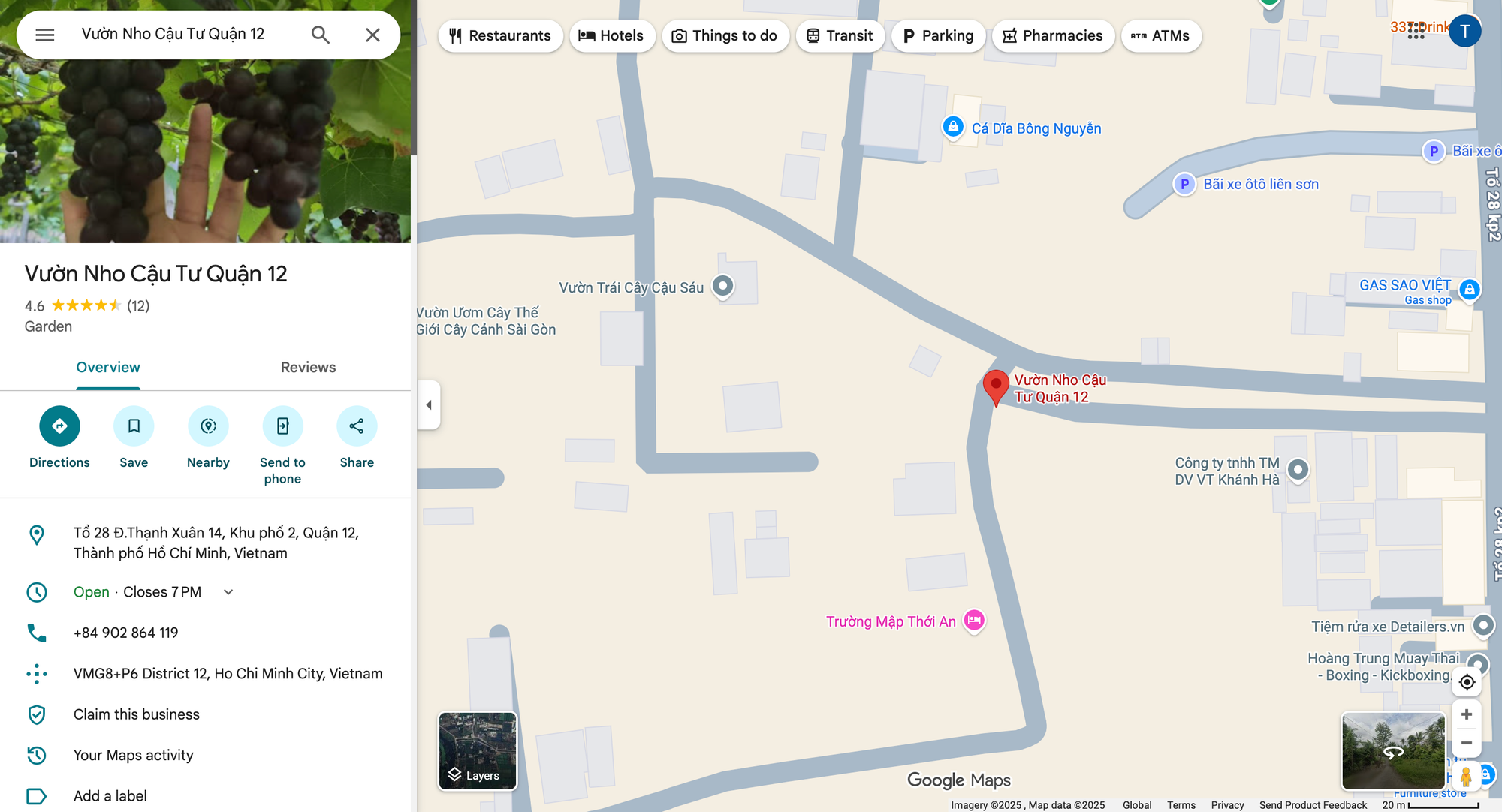 Cà phê vườn nho Thới An nằm ở Quận 12, cách trung tâm TP.HCM khoảng 15-20km.
