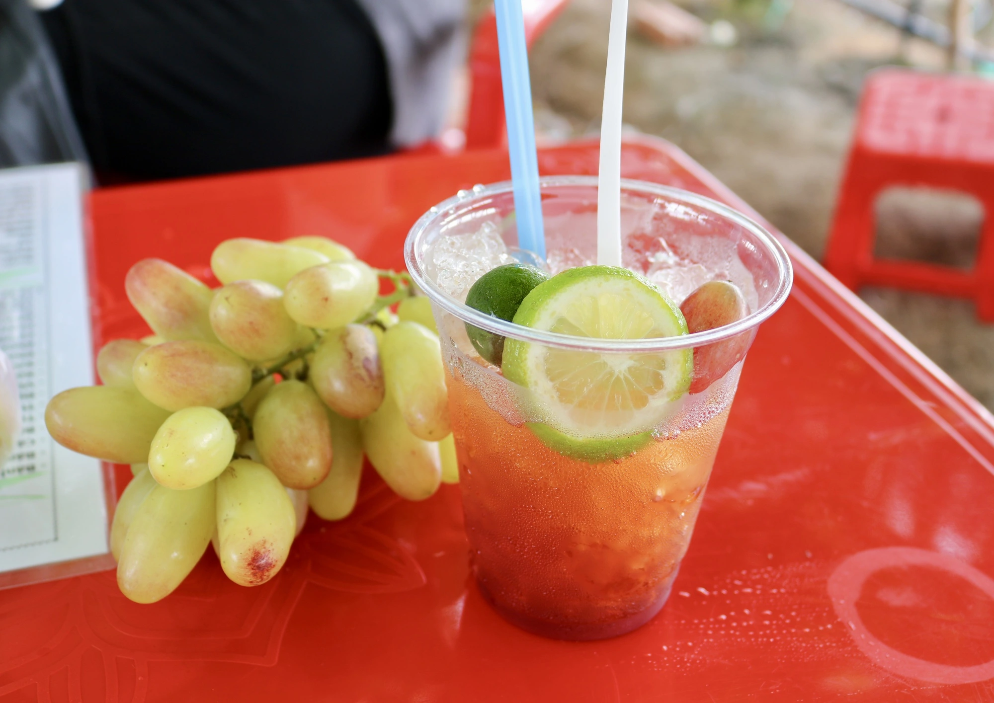 - Quán không chỉ bán cà phê mà còn phục vụ các đặc sản quê hương của chủ vườn (anh Lê Văn Hồng) như bánh canh chả cá, táo, mắm, mật nho. Đây là cơ hội để khách Sài Gòn thưởng thức hương vị Ninh Thuận ngay tại chỗ.