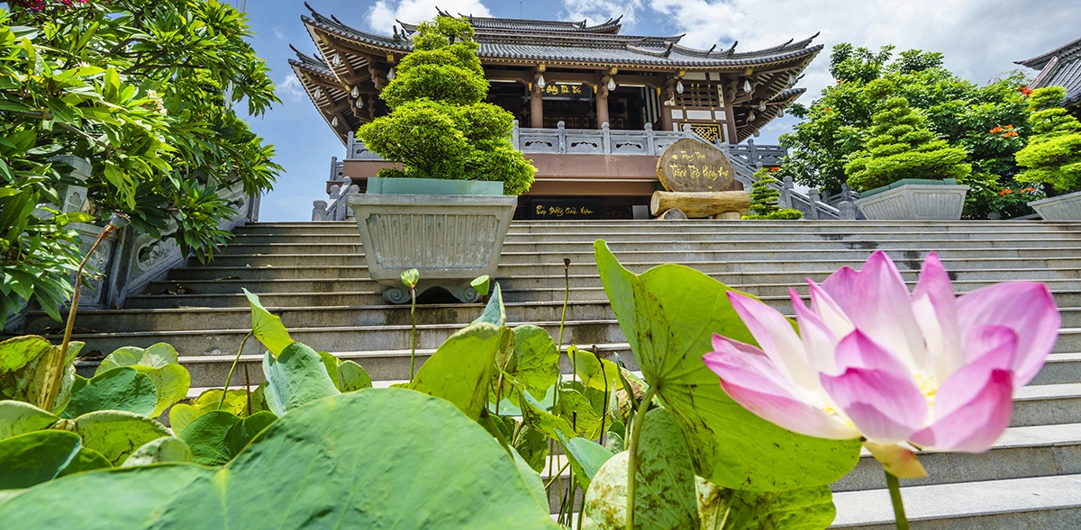 - Khuôn viên xanh mát: Hồ sen, hòn non bộ và những lối đi rải sỏi trắng tạo nên sự thiền tịnh, giúp bức ảnh của bạn trông "nghệ" hơn bao giờ hết.