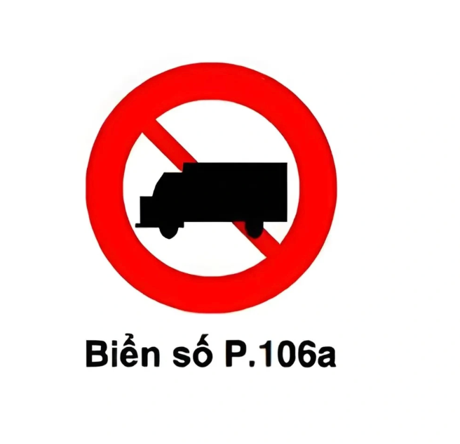 - Biển P.106a (Cấm ô tô tải): Áp dụng cấm tất cả các loại xe tải, bao gồm cả xe tải van chở hàng, bất kể tải trọng là bao nhiêu. Bạn tuyệt đối không được điều khiển xe tải van đi vào đoạn đường có biển này.