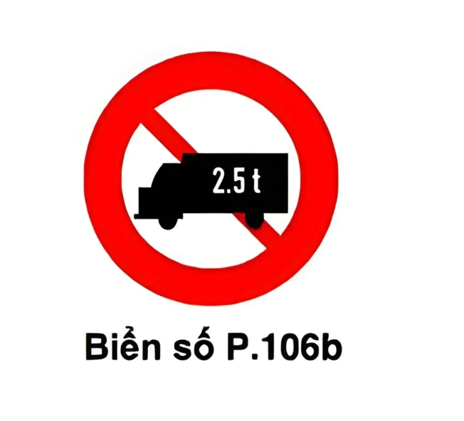 - Biển P.106b (Cấm ô tô tải theo tải trọng): Áp dụng tùy theo mức tải trọng được ghi cụ thể trên biển (ví dụ: 1.5T, 2T). Bạn cần đối chiếu khối lượng chuyên chở ghi trên giấy đăng kiểm của xe tải van với con số trên biển để biết xe mình có được phép đi vào hay không.