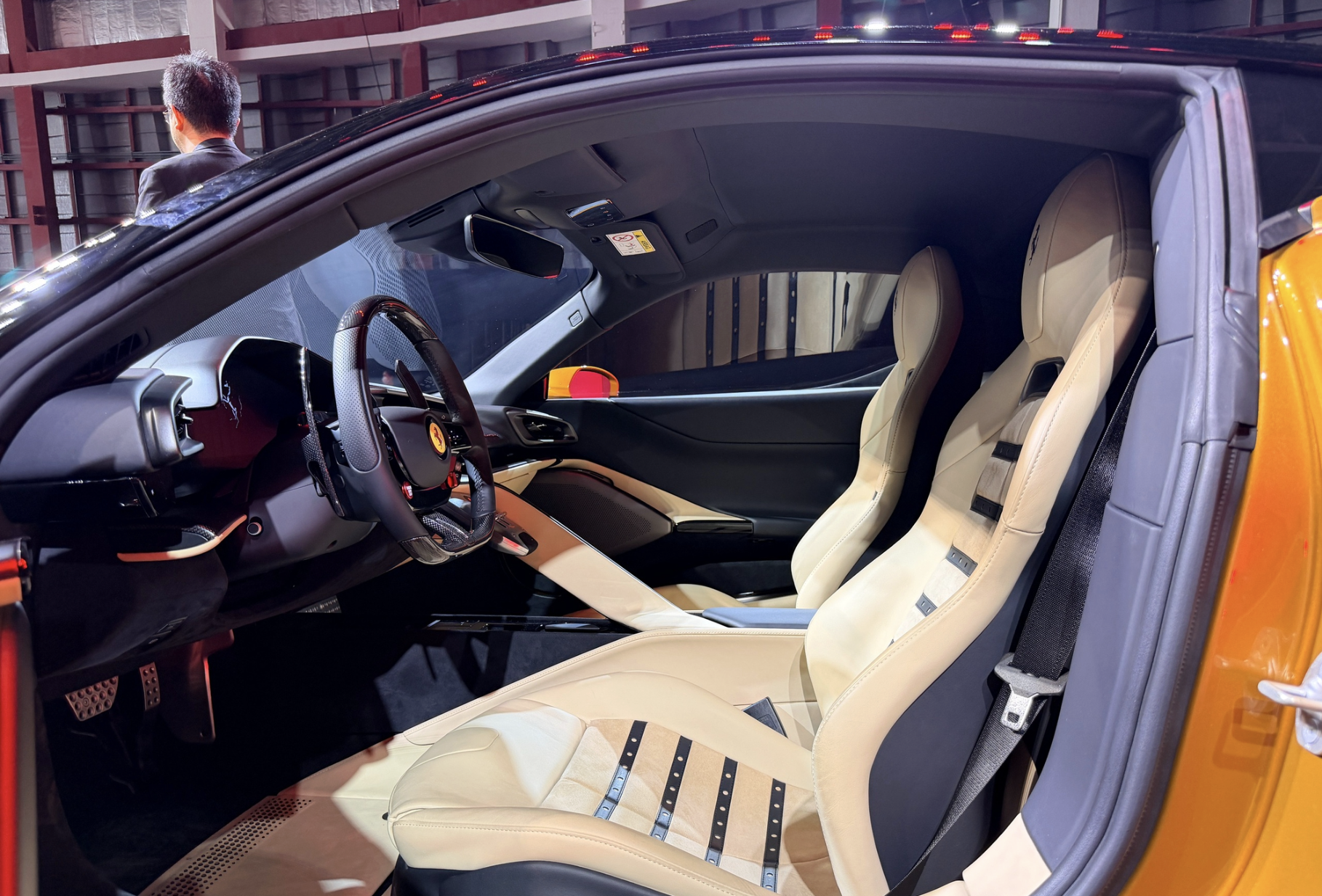 Điểm mới so với SF90 là vô lăng được thay toàn bộ bằng nút vật lý. SF90 từng dùng phím cảm ứng, khiến nhiều khách hàng phàn nàn về độ nhạy và tính thực dụng.