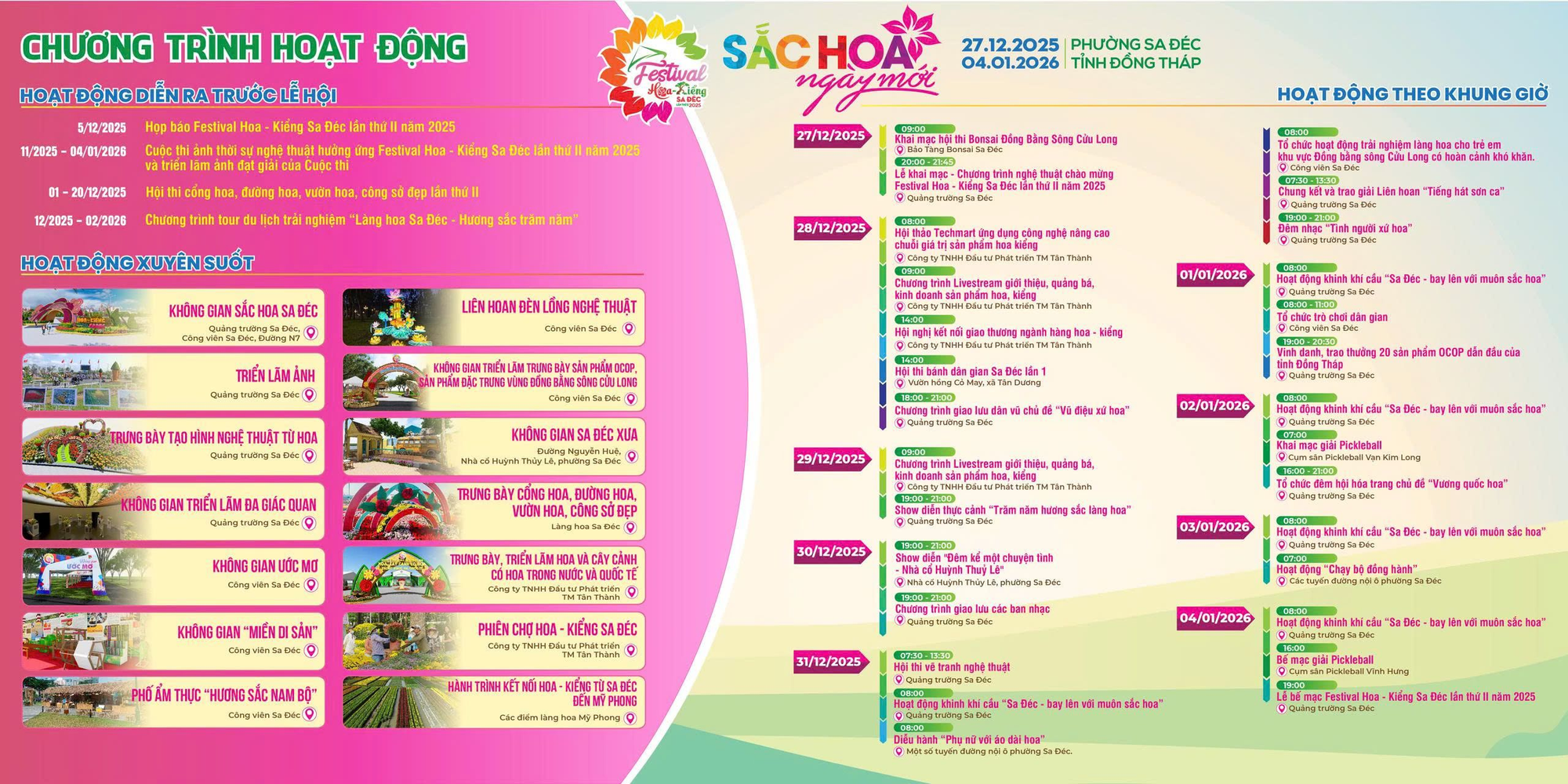 - Thời gian tổ chức Festival hoa kiểng Sa Đéc: Từ ngày 27/12/2025 đến hết ngày 04/01/2026.