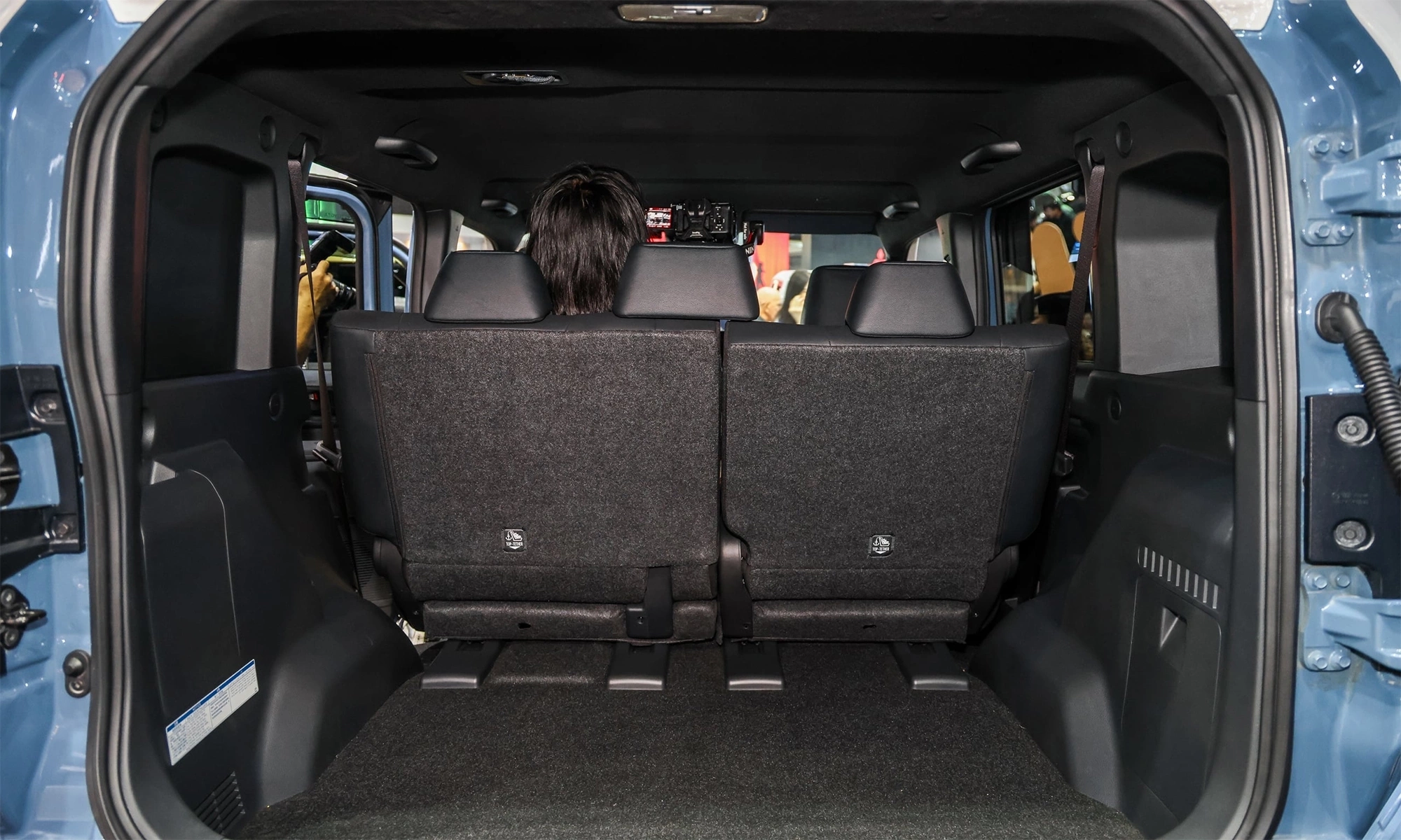 - Đuôi xe: Cột C bản lớn, cửa hậu mở ngang tiện dụng, lốp dự phòng gắn trực tiếp phía sau và cụm đèn hậu LED hình chữ C. Đặc biệt, cản trước và sau có thể tháo rời, tối ưu cho việc độ xe.