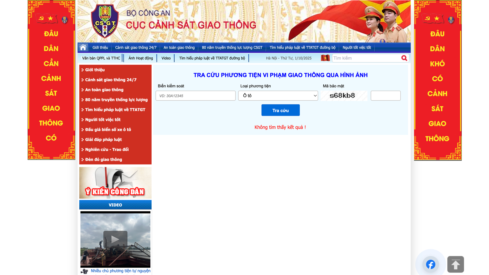 Website Cục CSGT (csgt.vn) cho phép tra cứu phạt nguội online 2025 qua hình ảnh camera.