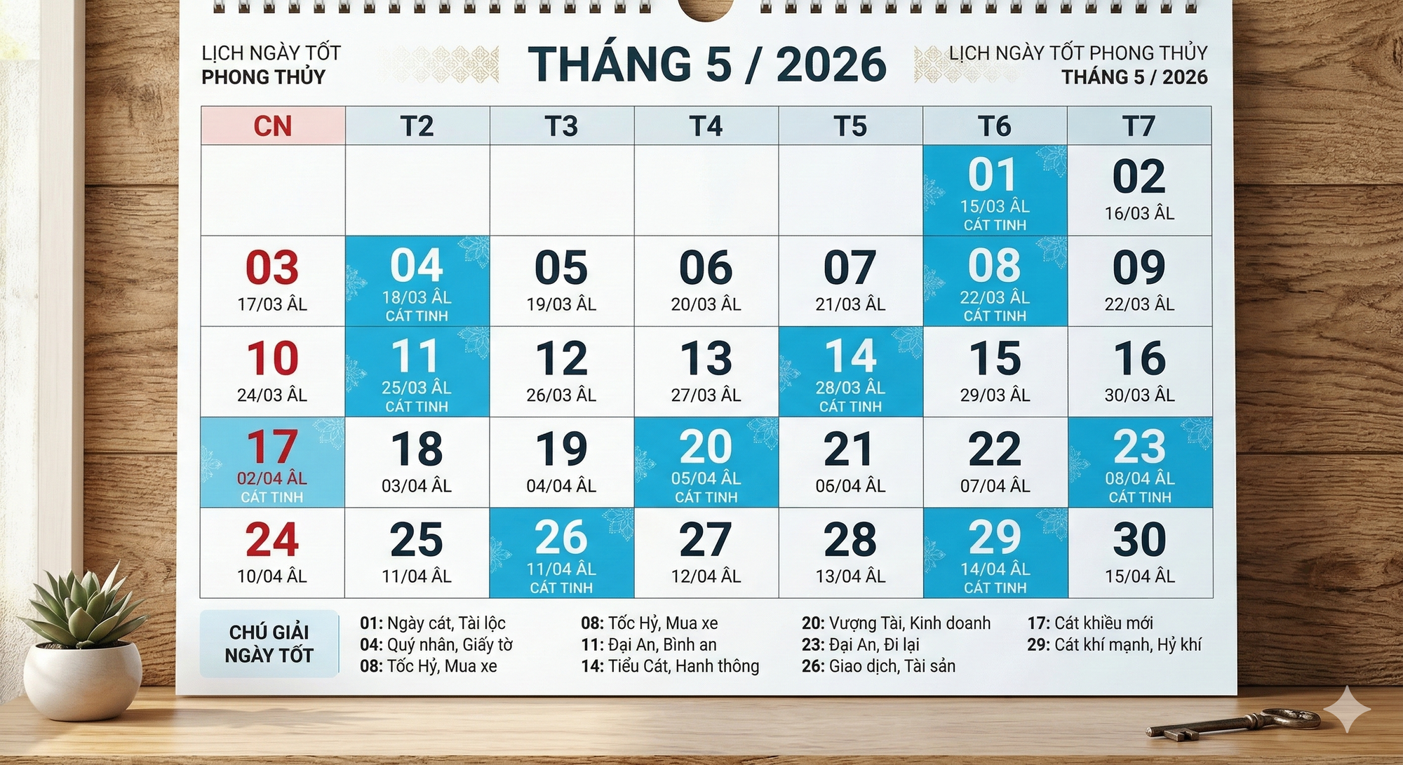 - Ngày 29/05/2026 (14/04 Âm lịch): Ngày chốt lại tháng 5 Dương lịch bằng một trường năng lượng cát khí mạnh, hoàn hảo để khởi đầu những chuyến đi mùa hè.
