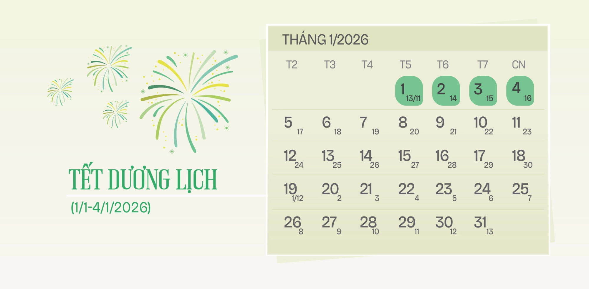 2.1. Lịch nghỉ Tết Dương lịch 2026
