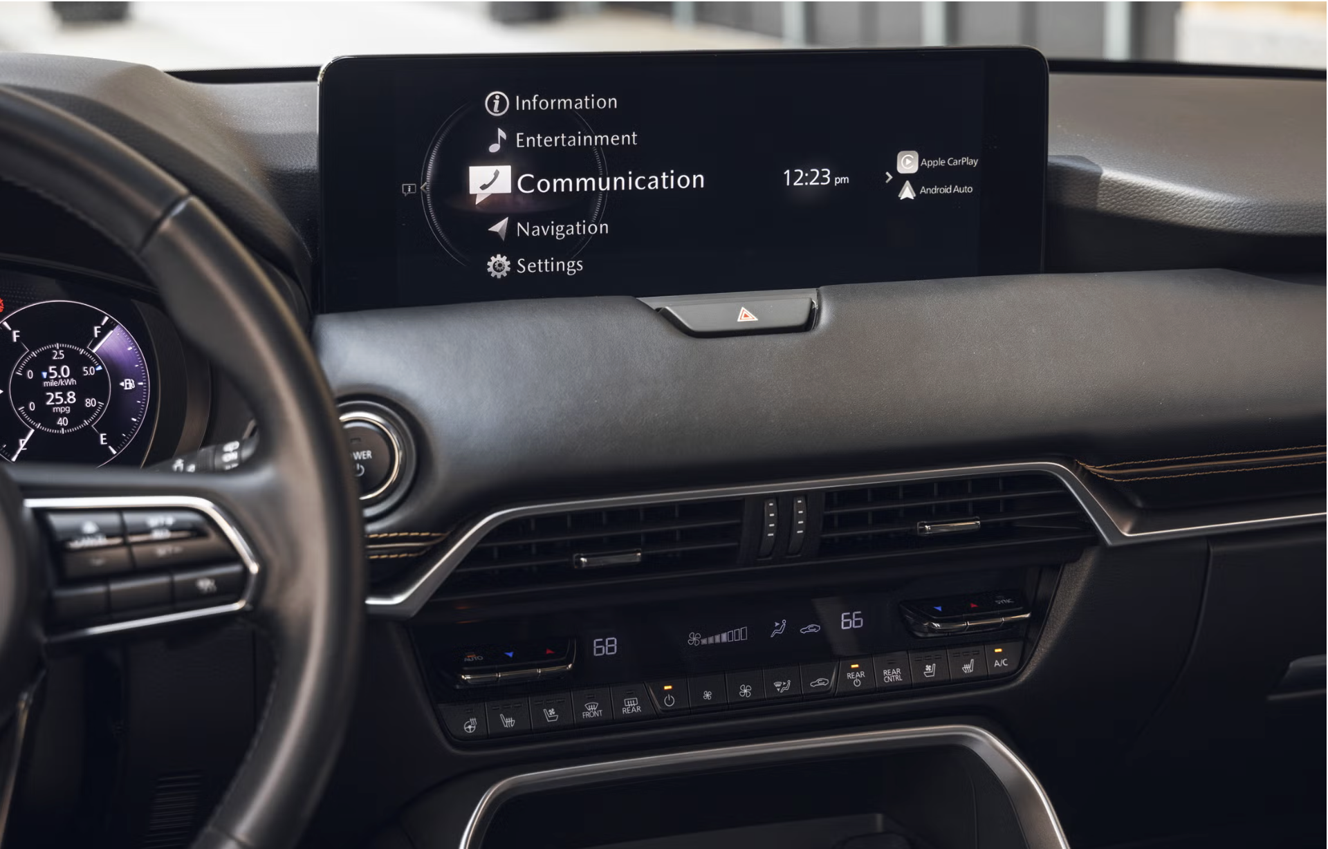 Trang bị nổi bật gồm vô-lăng 3 chấu bọc da, bảng đồng hồ kết hợp analog – kỹ thuật số, màn hình trung tâm 12,3 inch, nhiều cổng sạc Type-C kể cả hàng ghế thứ ba, phanh tay điện tử tiêu chuẩn.