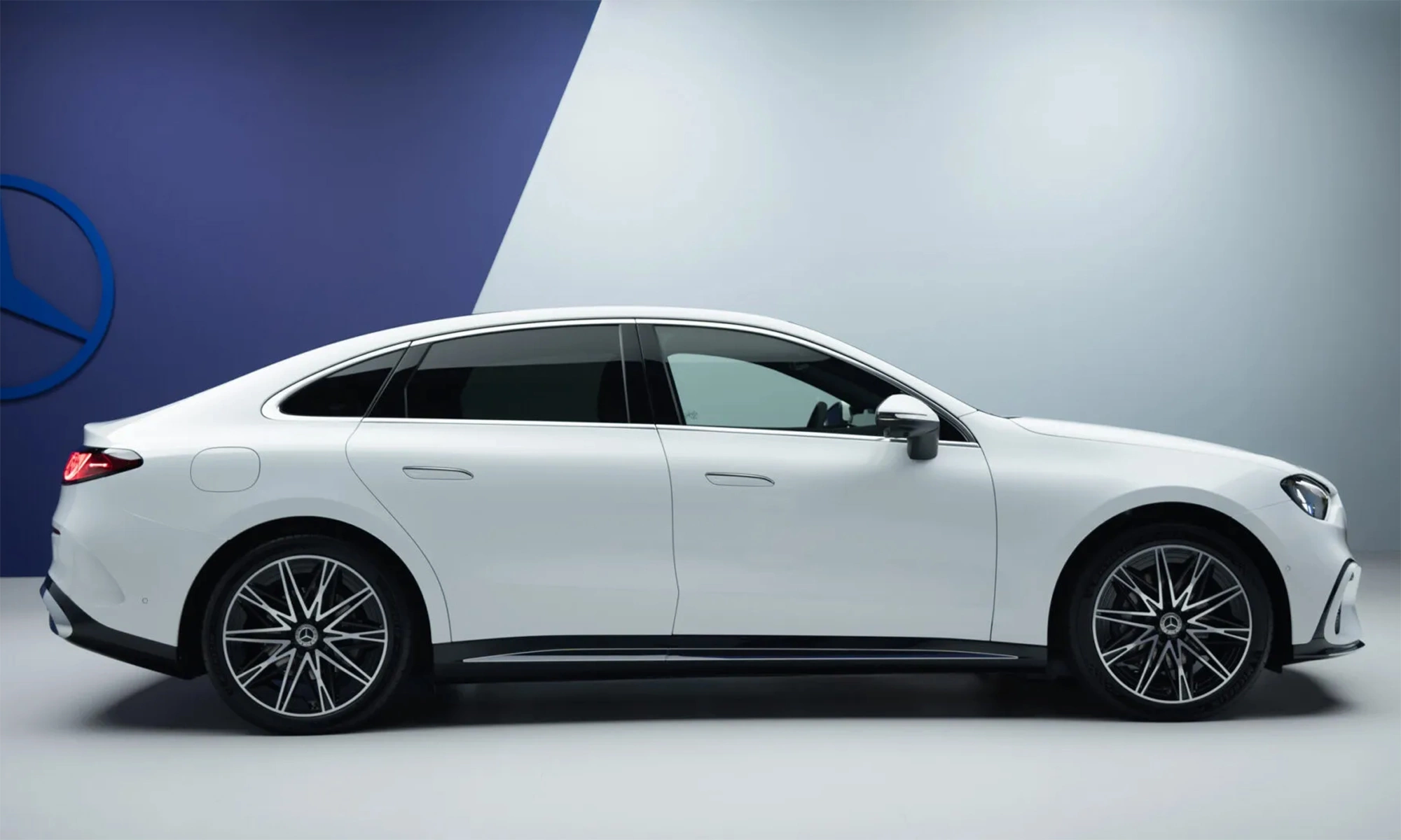 Ngoại hình của tân binh này có nhiều điểm tương đồng trong thiết kế với người anh em GLC Electric. Thay vì dáng sedan truyền thống, xe mang hơi hướng coupe vuốt nắp ca-pô và mui xe mượt mà ra phía sau, giúp tối ưu hóa tính khí động học.