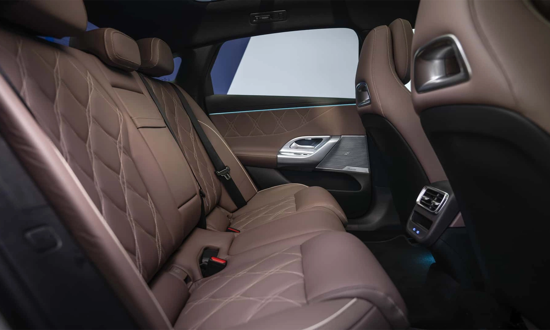 Khoang cabin của xe điện C-class hướng đến sự sang trọng mang tính tương lai. Nhờ trục cơ sở kéo dài, không gian để chân ở hàng ghế thứ 2 vô cùng rộng rãi.