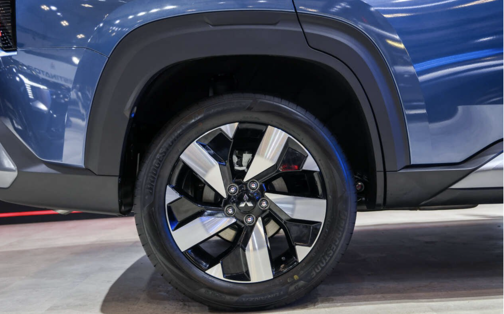 Thiết kế ngoại thất theo ngôn ngữ Dynamic Shield: Lưới tản nhiệt tổ ong đa tầng, đèn pha LED xếp tầng với dải DRL hình boomerang, hốc hút gió lục giác tích hợp sương mù. Thân xe có đường gân dập nổi, ốp nhựa đen hốc bánh và mâm 18 inch hai tông màu. Phía sau, đèn hậu chữ "T" LED và cốp vuông vắn lấy cảm hứng từ Pajero – tạo vẻ mạnh mẽ, off-road.