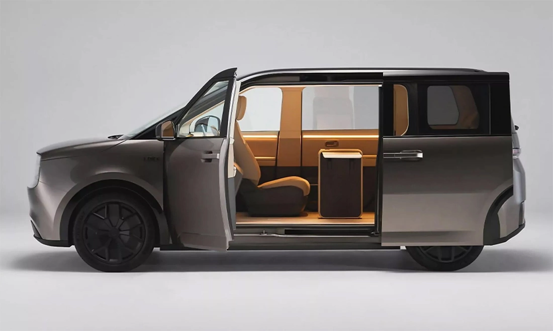 Thân xe được thiết kế với cửa trượt điện và phần đuôi gần như vuông đứng – tối ưu không gian nội thất. Kiểu dáng tổng thể tạo cảm giác vững chãi, thực dụng nhưng vẫn mang hơi hướng công nghệ tương lai.