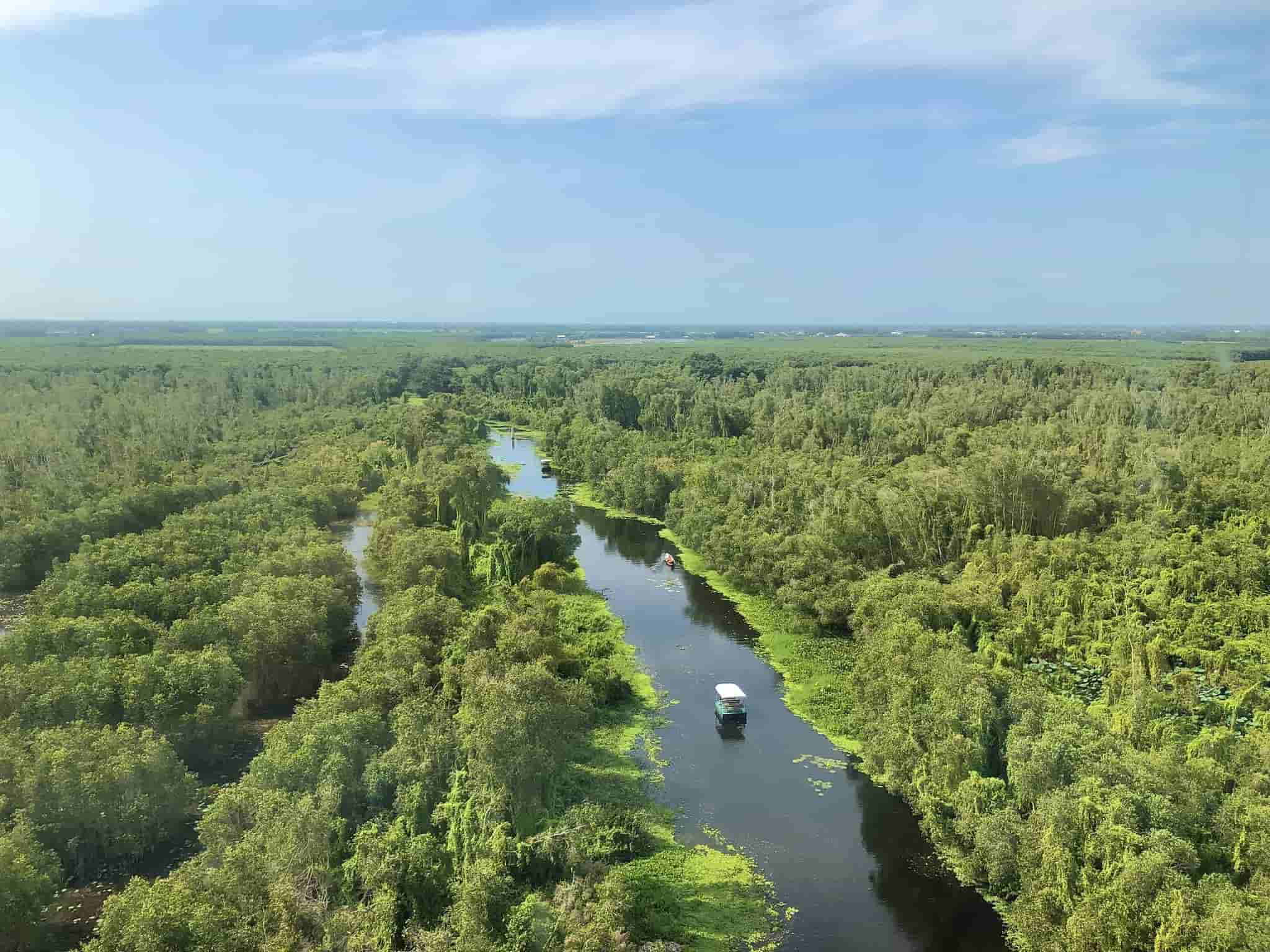 Đi xuồng xuyên rừng tràm, check-in con đường trên không 5 km và lên tháp cao ngắm toàn khu rừng ngập nước.