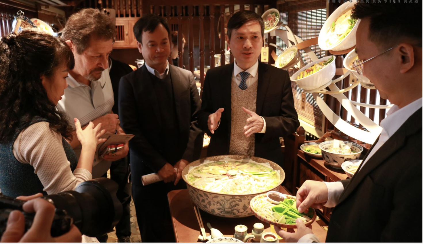 Không gian tái hiện hành trình hình thành món phở Hà Nội, từ sợi bánh đến nước dùng, gắn với ký ức ẩm thực của người Tràng An.