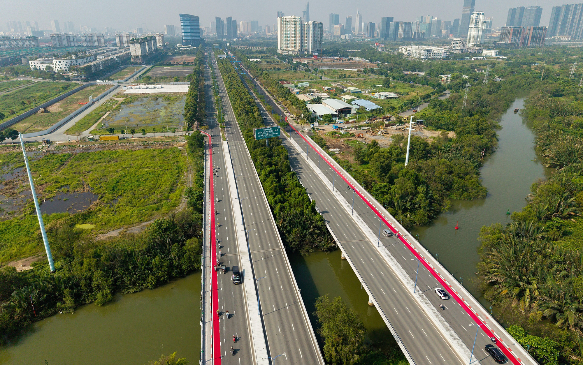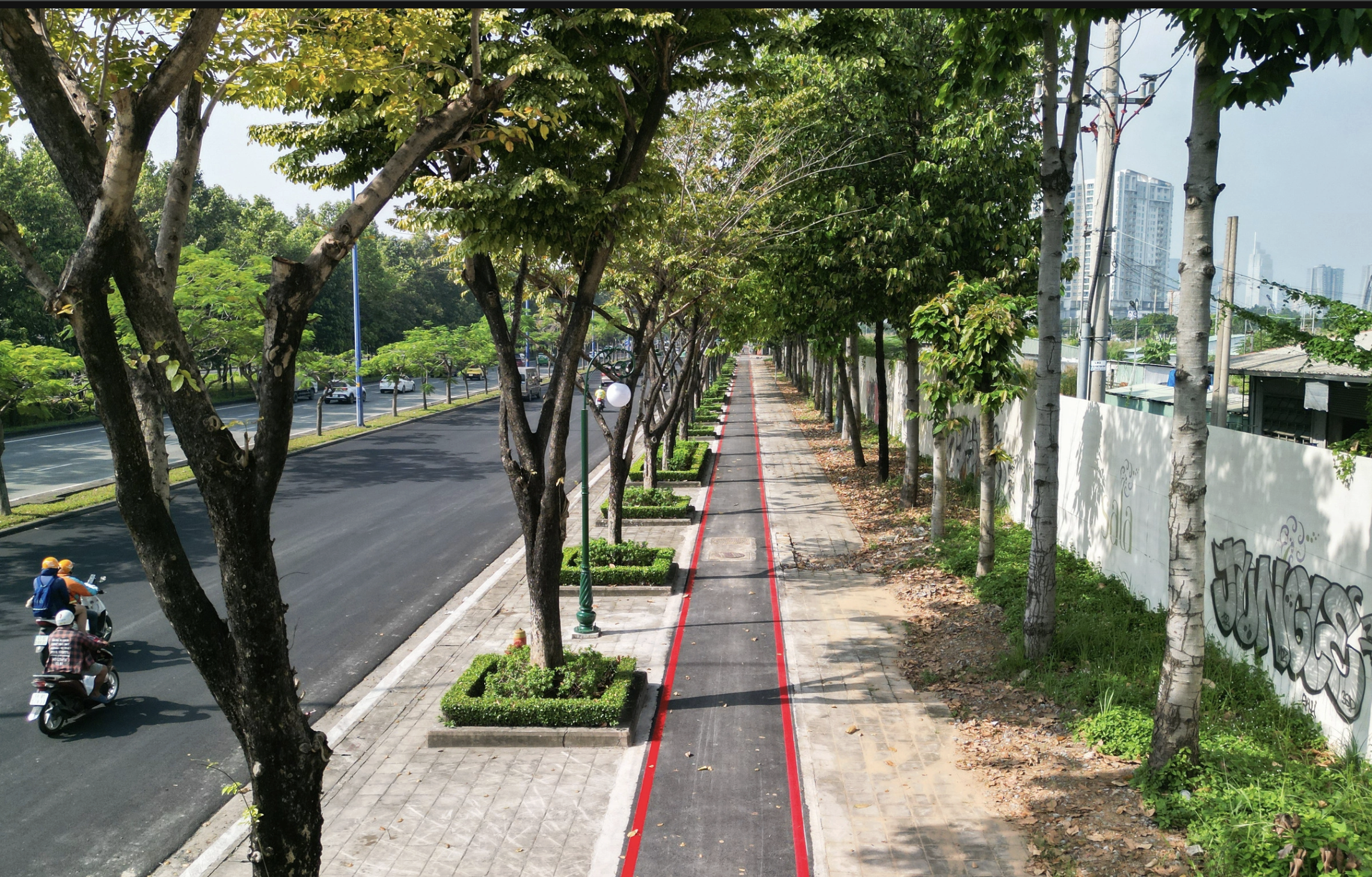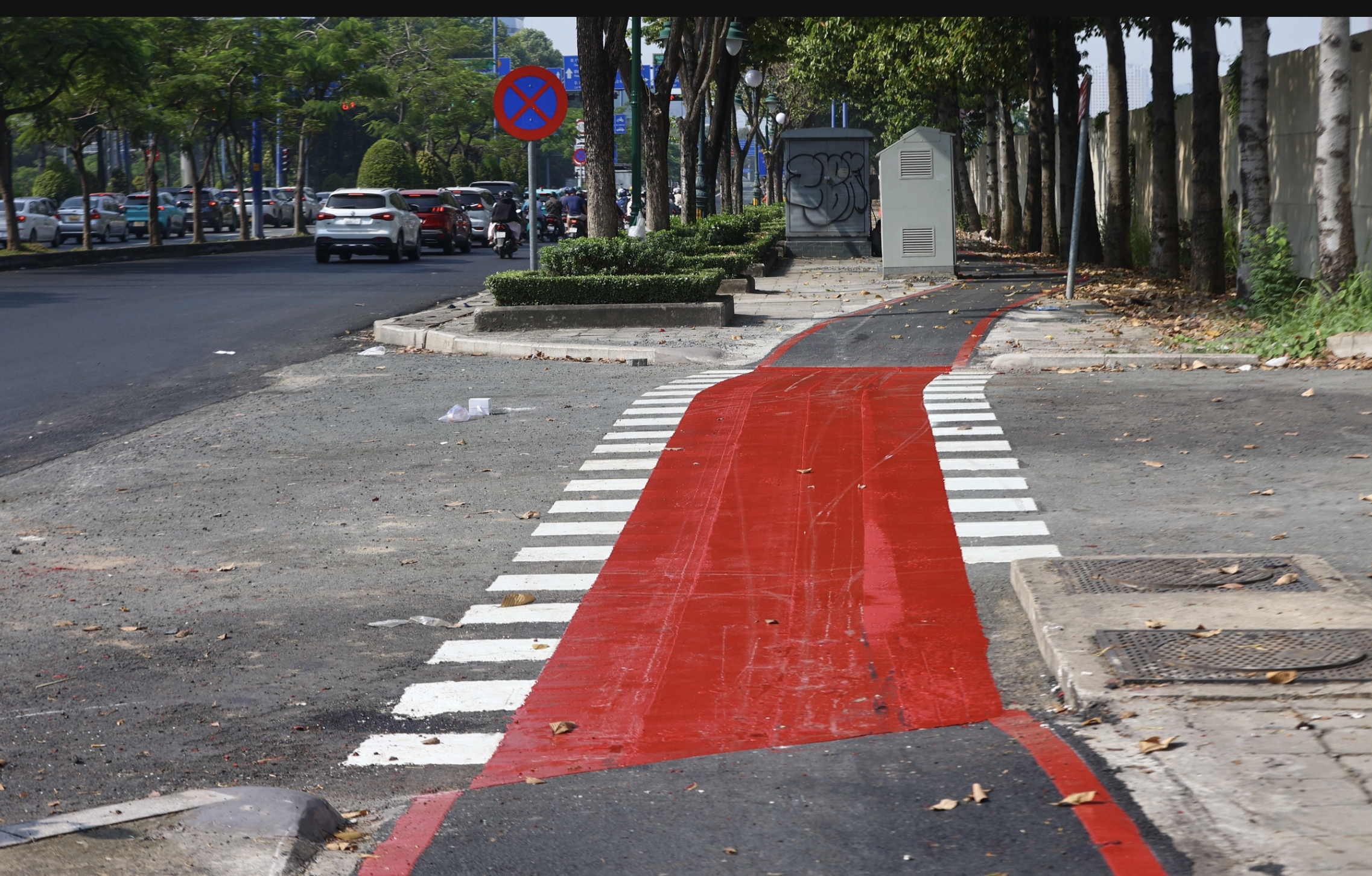 Sau hơn hai tháng thi công, tuyến làn xe đạp dài khoảng 5,8 km từ đường Nguyễn Cơ Thạch đến D1 đã được trải nhựa và kẻ vạch đỏ riêng biệt trên vỉa hè đại lộ Mai Chí Thọ. Với bề rộng khoảng 2 m (thu hẹp còn 1,5 m qua cầu), làn đường tạo không gian riêng tách biệt hoàn toàn với lưu lượng xe máy và ôtô.