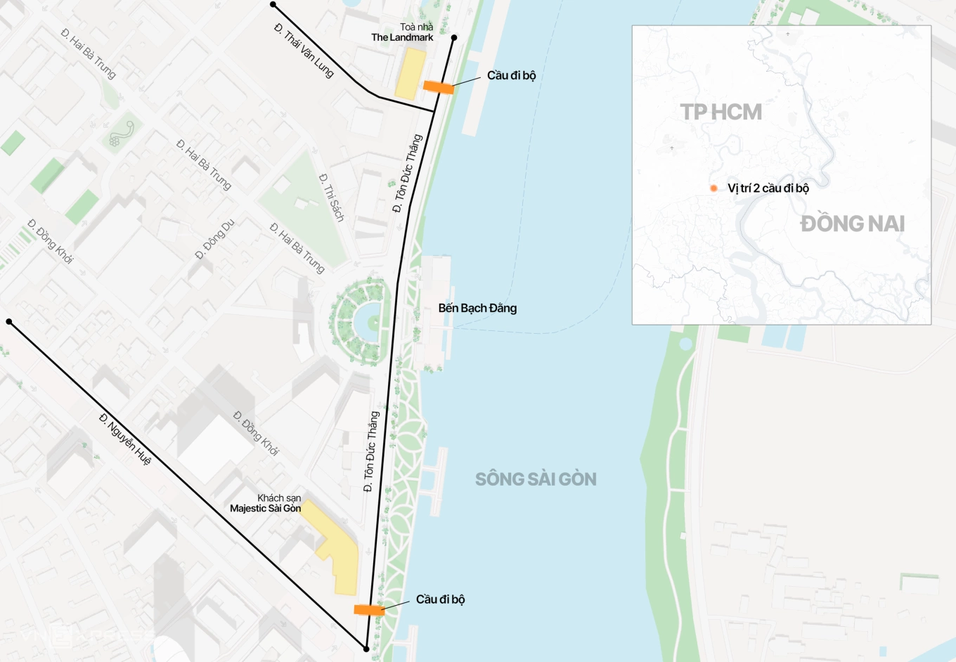TP HCM sẽ xây dựng hai cầu đi bộ bắc qua đường Tôn Đức Thắng, kết nối phố đi bộ Nguyễn Huệ và đường Thái Văn Lung với công viên bến Bạch Đằng. Dự án nhằm giảm ùn tắc, tăng an toàn cho người qua đường và tạo điểm nhấn cảnh quan mới tại trung tâm thành phố.