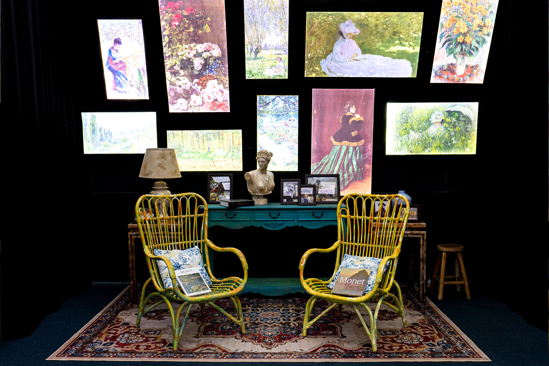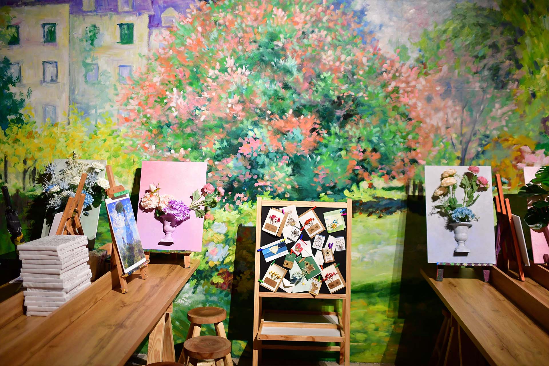 Không gian mô phỏng phòng vẽ của Monet với các chất liệu hội họa, bảng màu, và bản phác thảo. Khách tham quan có thể tự tay thử sức sáng tạo với màu nước hoặc ánh sáng mô phỏng tranh Impressionist.