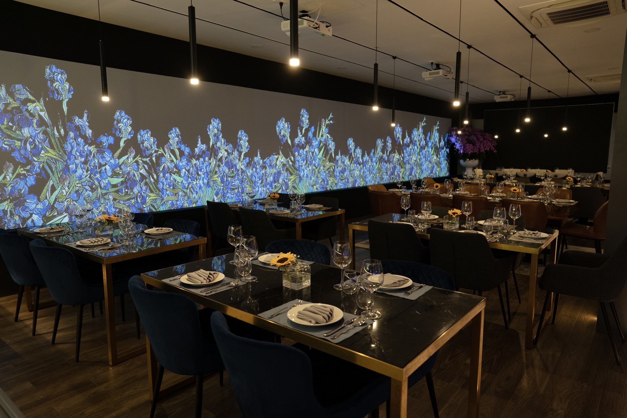 Khu vực ẩm thực sang trọng mang phong cách châu Âu thế kỷ 19, từ thiết kế đến thực đơn đều được lấy cảm hứng từ màu sắc và đời sống của Van Gogh, tạo nên trải nghiệm vị giác đầy chất nghệ thuật.