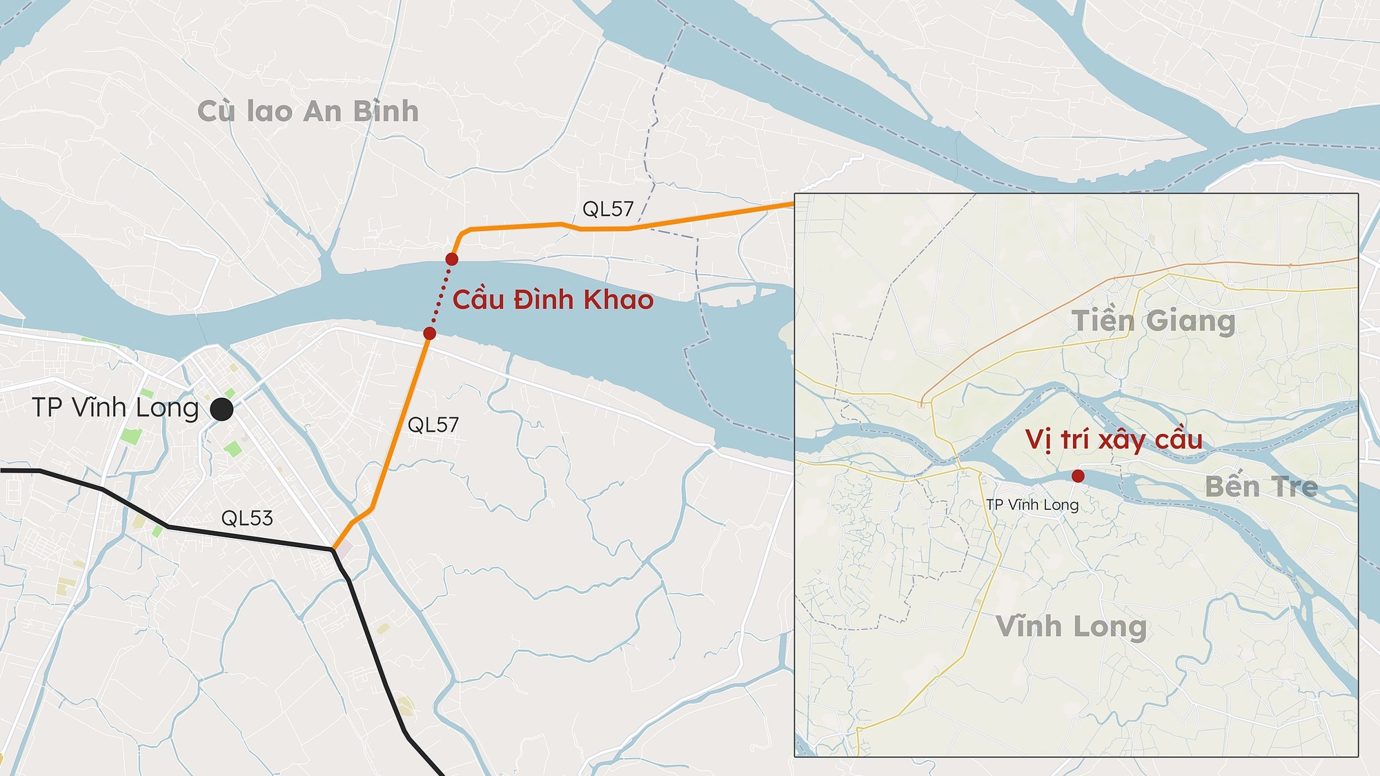 Dự án cầu Đình Khao tại Vĩnh Long sẽ chính thức khởi công vào 19/12, đánh dấu bước quan trọng trong việc thay thế phà Đình Khao và tăng cường kết nối giao thông khu vực Đồng bằng sông Cửu Long. Công trình có tổng vốn đầu tư hơn 2.852 tỷ đồng, triển khai theo hình thức PPP – hợp đồng BOT.