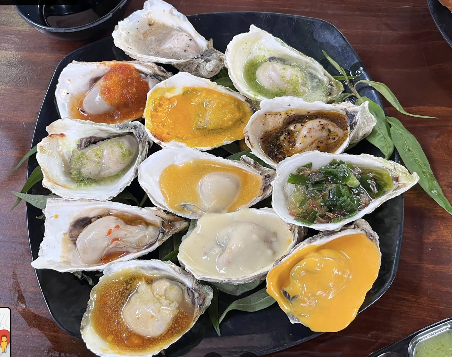 - Món nhất định phải thử: Ốc mỡ sốt trứng muối kèm bánh mì, hàu nướng phô mai kéo sợi.