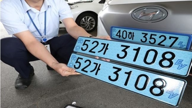 - Hàn Quốc: xe điện và xe hydro dùng biển xanh lam nhạt, được ưu tiên bãi đỗ và giảm phí
