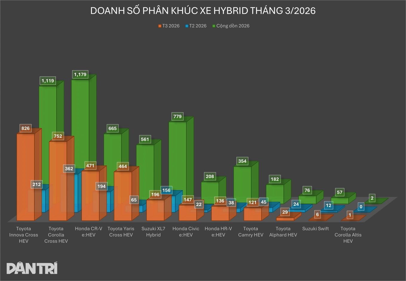 Thị trường ô tô Việt Nam đầu năm 2026 ghi nhận sự tăng trưởng ấn tượng của dòng xe hybrid. Theo số liệu từ Hiệp hội Các nhà Sản xuất Ô tô Việt Nam (VAMA), trong tháng 3, tổng cộng 3.149 xe hybrid đã được bán ra, tăng gần 2,8 lần so với tháng trước.